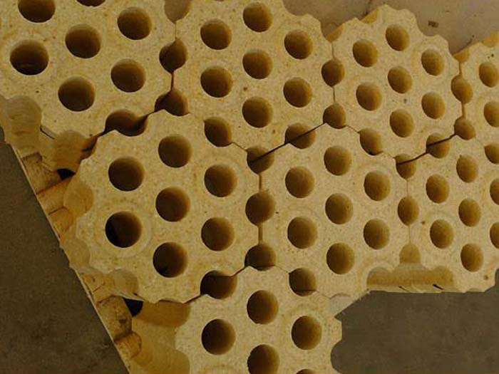 高鋁孔磚具有體積穩(wěn)定性好,高溫荷重蠕變性能良,高密度低氣孔率等點(diǎn)。熱風(fēng)爐孔磚的用途:孔磚主要用在熱風(fēng)爐上,當(dāng)熱風(fēng)低于900℃時(shí),一般選用粘土磚;當(dāng)風(fēng)溫高于900℃時(shí),孔磚則采用高鋁磚、莫來石磚、硅線石磚和硅磚等。