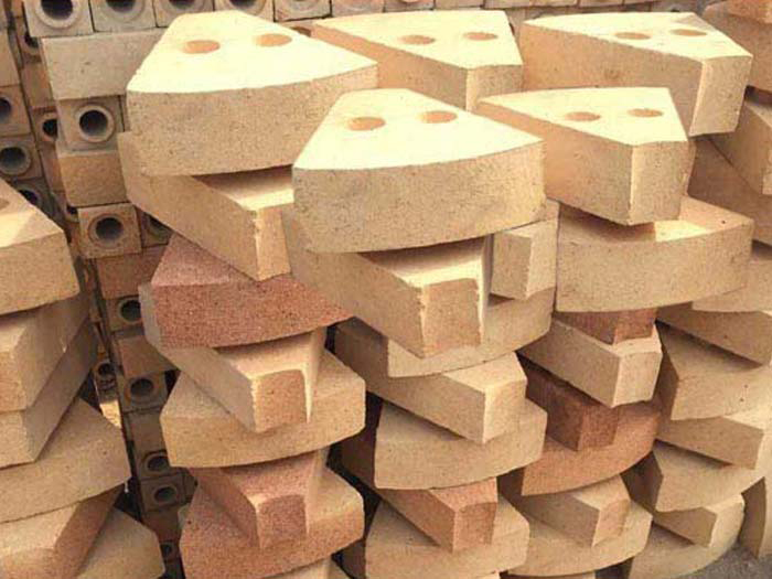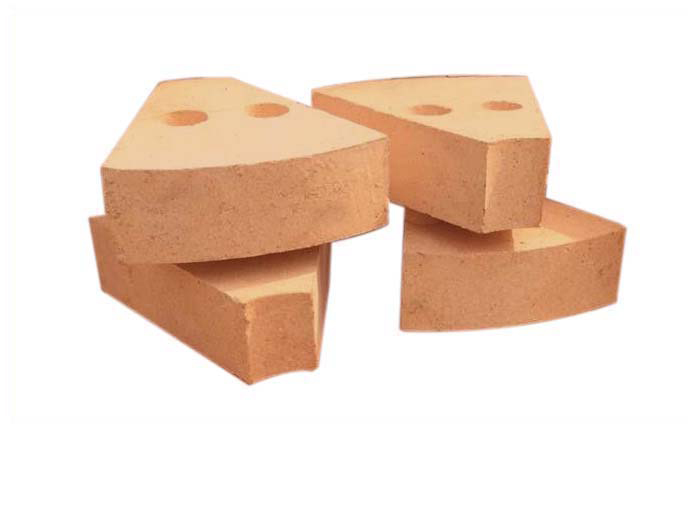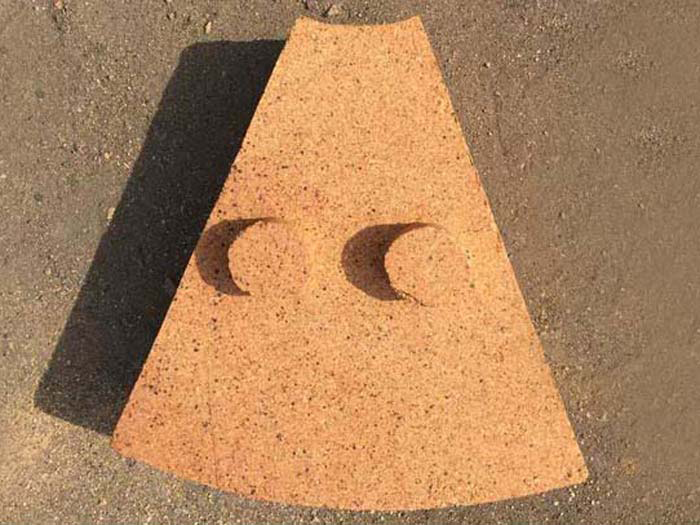 粘土質(zhì)扇形耐火磚是為防止內(nèi)襯環(huán)形砌磚用磚在其長(zhǎng)期轉(zhuǎn)動(dòng)中因松動(dòng)而抽沉、脫落甚至掉落,而將筒體同心圓環(huán)柱體內(nèi)襯分割成若干個(gè)形狀尺寸相同的部分,每個(gè)部分即為扇形耐火磚。